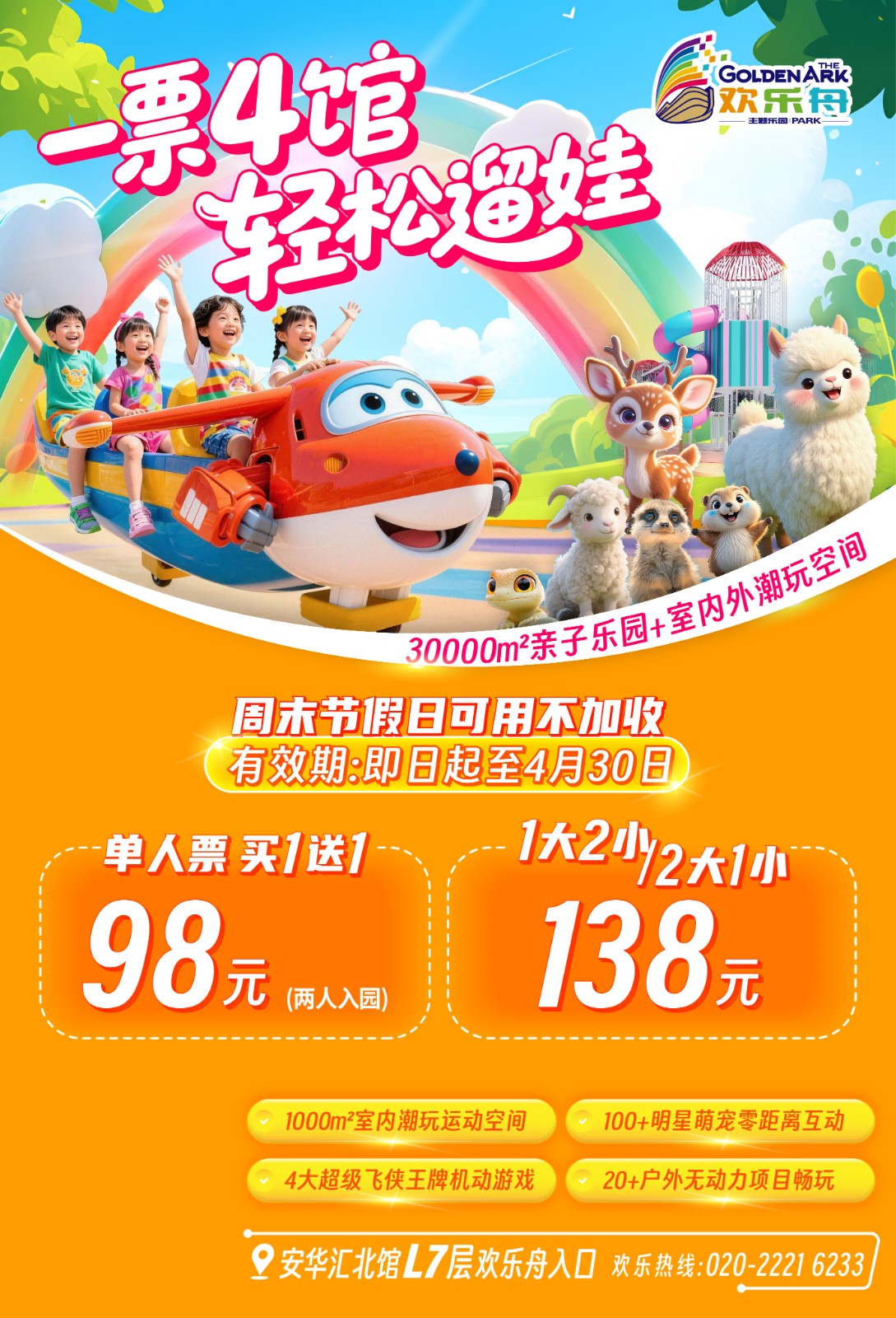 歡樂舟踏春遛娃4館(買1送1兩人入園+超級飛俠機動遊戲+室內淘氣堡+萌寵樂園+無動力項目)